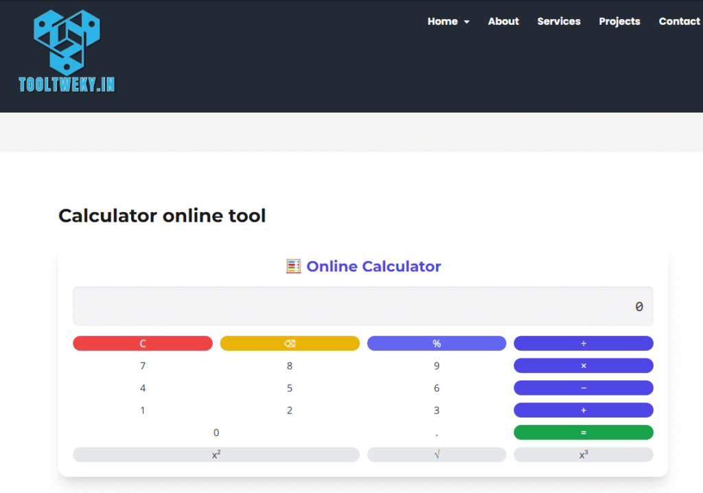An Online Calculator Tool is a free digital tool that helps you solve math problems quickly and easily without needing a physical calculator. It can handle basic operations like addition, subtraction, multiplication, and division, as well as advanced functions such as percentages, square roots, and trigonometry. The tool works on any device with an internet connection, which makes it very convenient for students, teachers, and professionals.